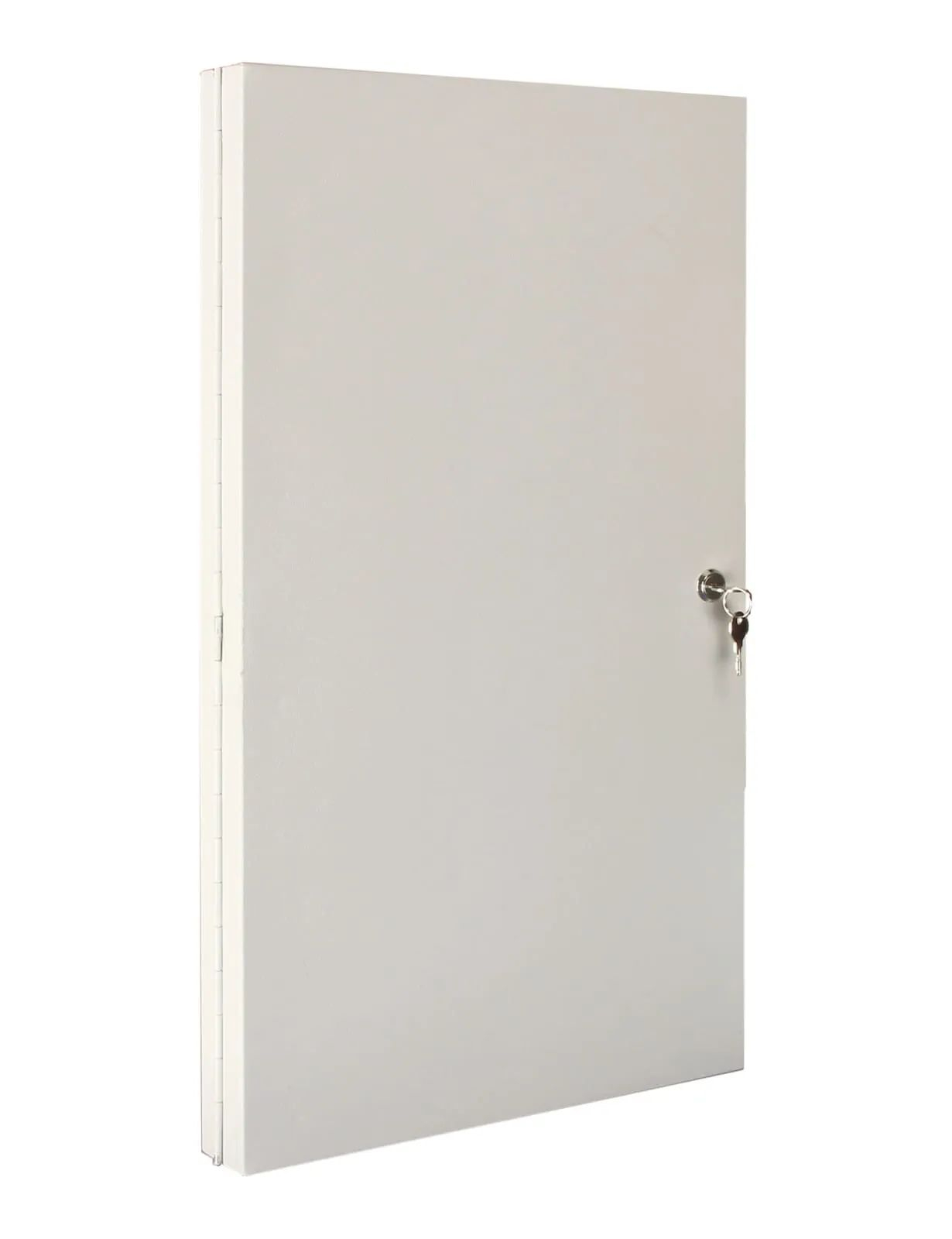 Ключница на 100 ключей представляет собой компактное устройство для удобного хранения большого количества ключей. Ключница комплектуется 10 планками с крючками, что позволяет легко организовать хранение и быстро находить нужный ключ.На задней стенке корпуса расположены отверстия для крепления. В дверь установлен замок типа «Cam-Lock».