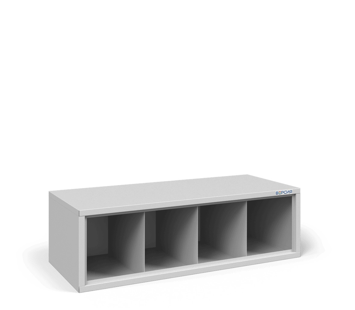 Металлический шкаф для хранения противогазов (4 ячейки, без дверей) — практичное решение для размещения средств индивидуальной защиты (СИЗ) на промышленных объектах, в учреждениях и на складах.