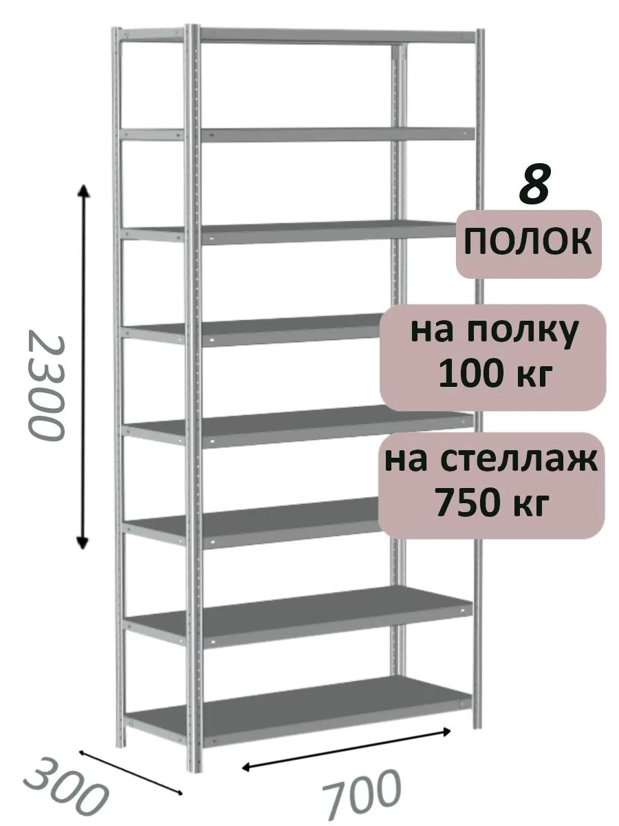 Чтобы уточнить цену и заказать доставку Стеллаж металлический полочный МС 2300х700х300, 8 полок, 100 кг на полку, светло-серый в Екатеринбурге, звоните по телефону или закажите обратный звонок.