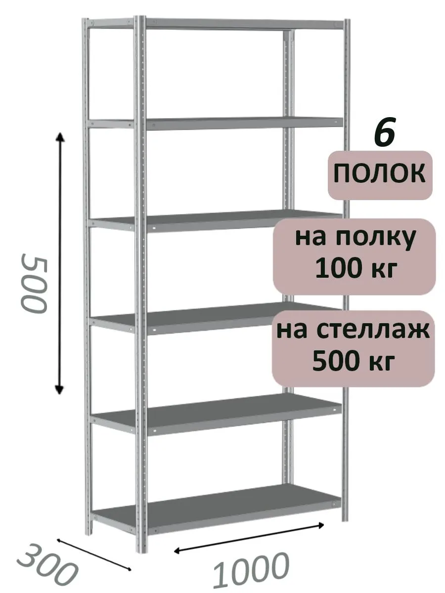 Стеллаж металлический полочный МС-500 500х1000х300, 6 полок, светло-серый
