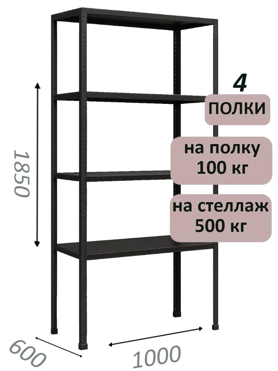 Стеллаж MS Standart 185х100х60, 4 полки, чёрный