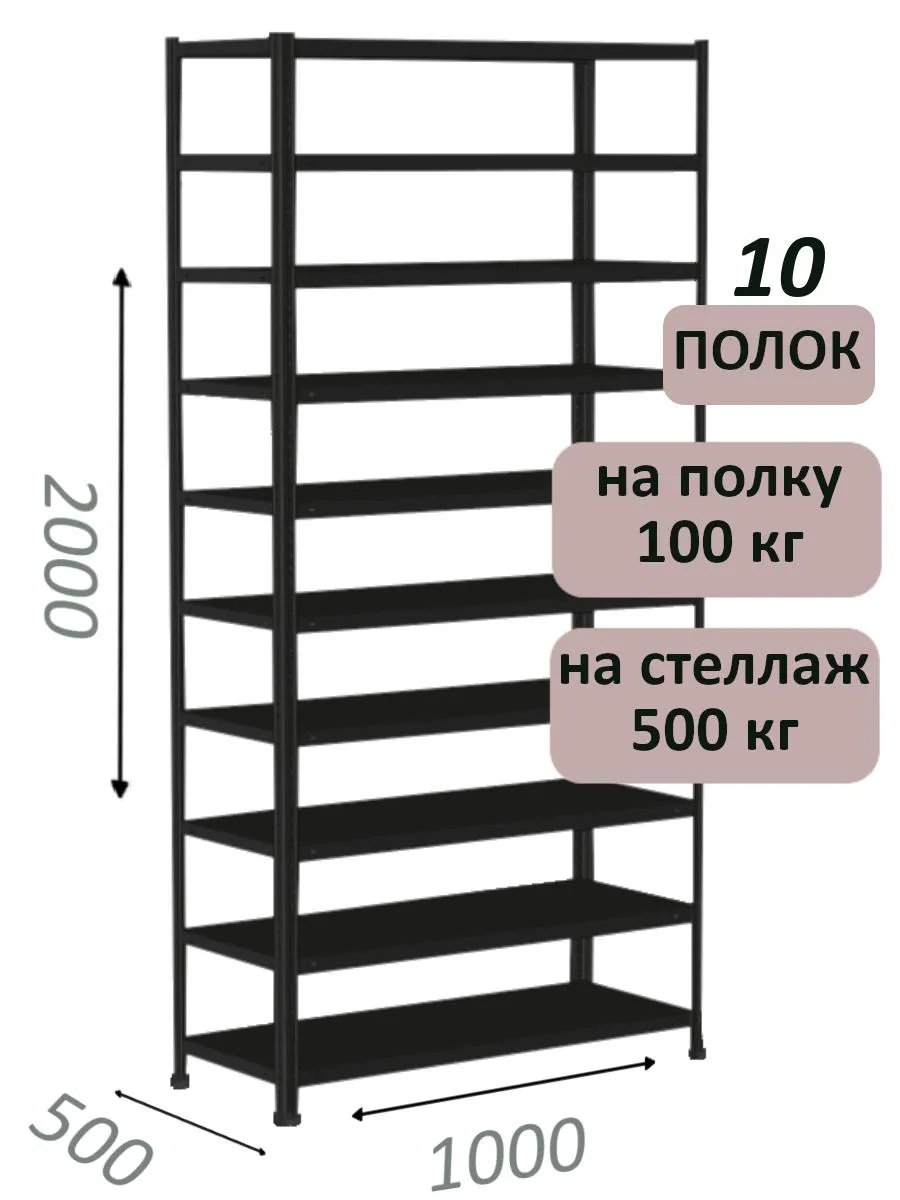 Стеллаж MS Standart 200х100х50, 10 полок, чёрный