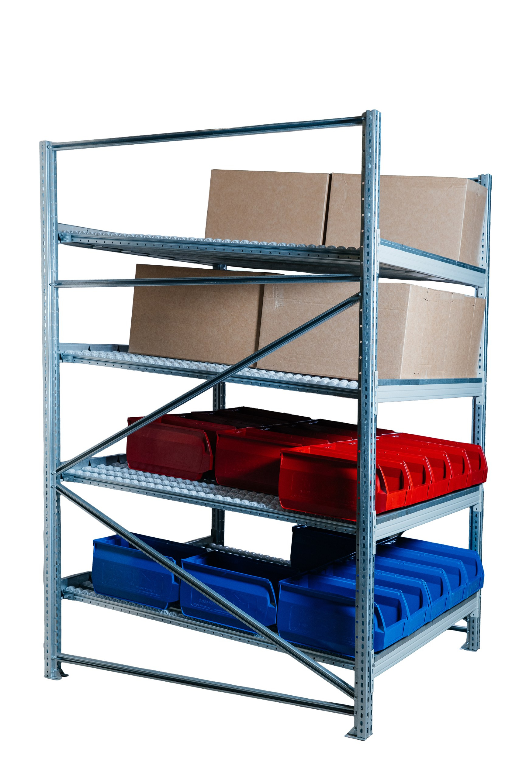 Гравитационный стеллаж с роликовыми полками 1600х1500х1300, 4 яруса