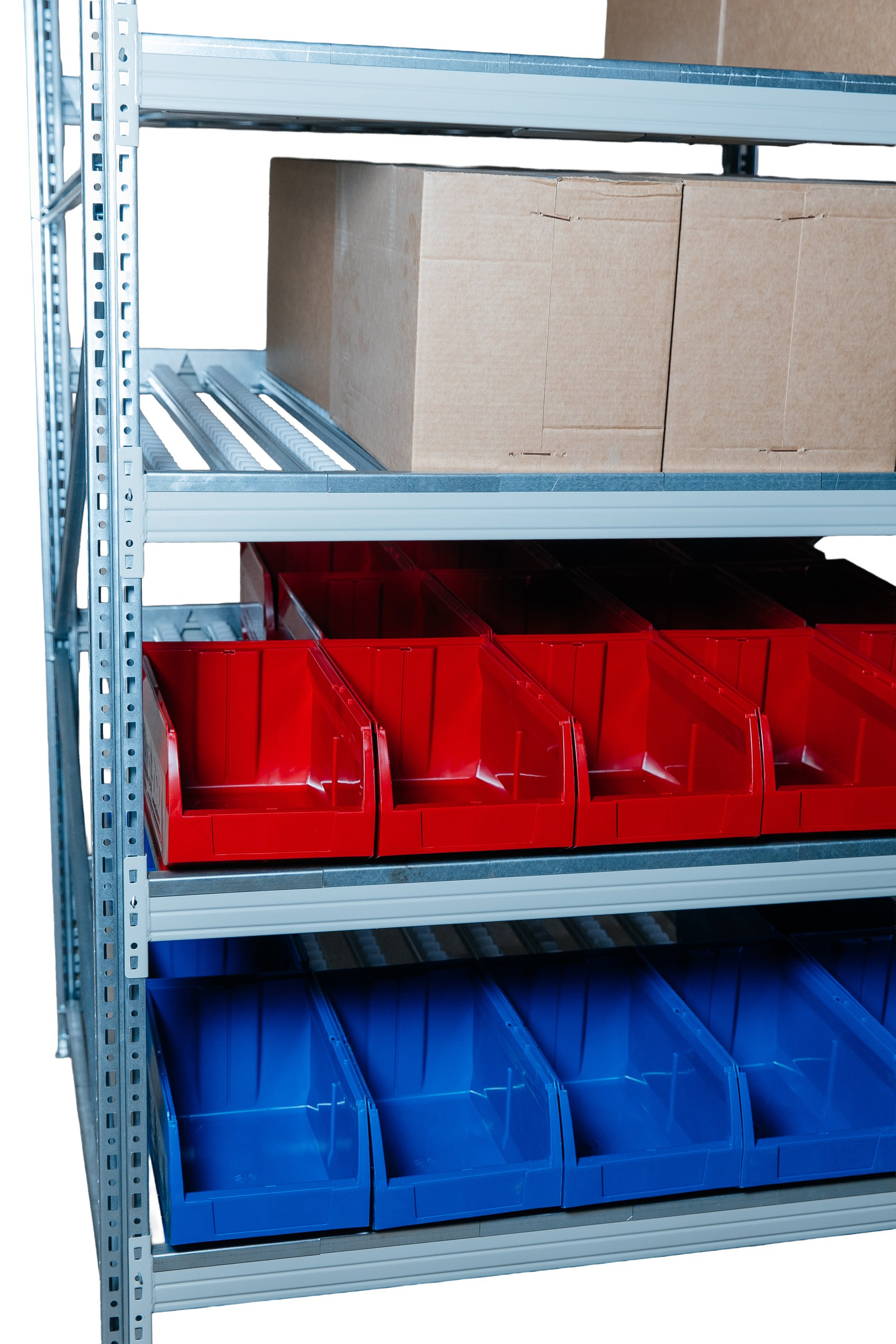 Варианты наполнения стеллажа пластиковыми ящиками