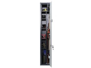 Сейф односекционный, на 2 ствола оснащен съемными полками и отделением под патроны. Максимальная высота устанавливаемого оружия — 1130 мм. Ложементы — металлические держатели с резиновыми роликами. Два замка ЗАО «Про-Сам» г. Рязань или аналогичные замки другого производителя.