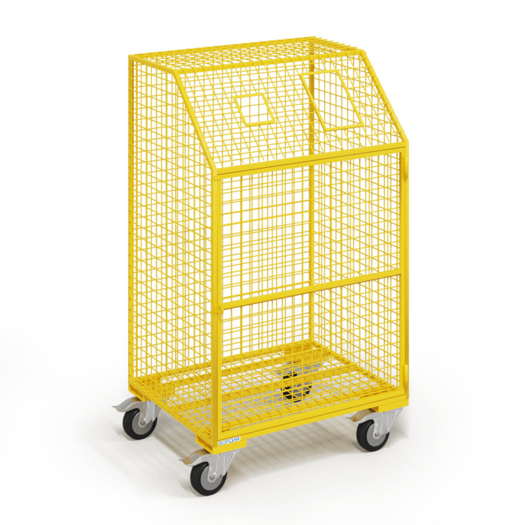Прозрачная сетчатая конструкция позволяет визуально контролировать уровень заполнения без необходимости открывать контейнер, а прочный сварной каркас выдерживает нагрузку до 200 кг. Колесная база обеспечивает легкое перемещение даже при полной загрузке, а тормоза на поворотных колесах фиксируют контейнер на месте.