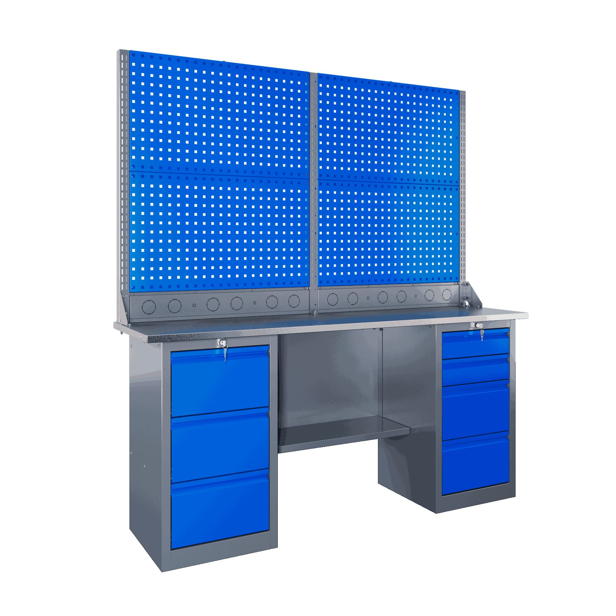 Самые компактные верстаки с глубиной столешницы 500 мм. Благодаря небольшой глубине, такие верстаки легко размещаются в ограниченных пространствах, например, в гаражах, мастерских и тд. Несмотря на компактные размеры, верстаки могут быть оснащены полками, ящиками и держателями для инструментов, что помогает поддерживать порядок и быстро находить нужные предметы.