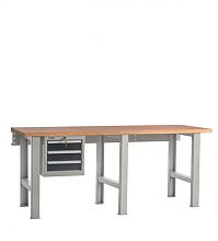 Металлические элементы верстаков окрашены эпоксидной порошковой краской, устойчивой к механическим воздействиям и агрессивным жидкостям. Ящики, дверцы тумб и стойки экрана – цвет антрацитово-серый RAL 7016, остальные элементы – цвет серый RAL 7038.